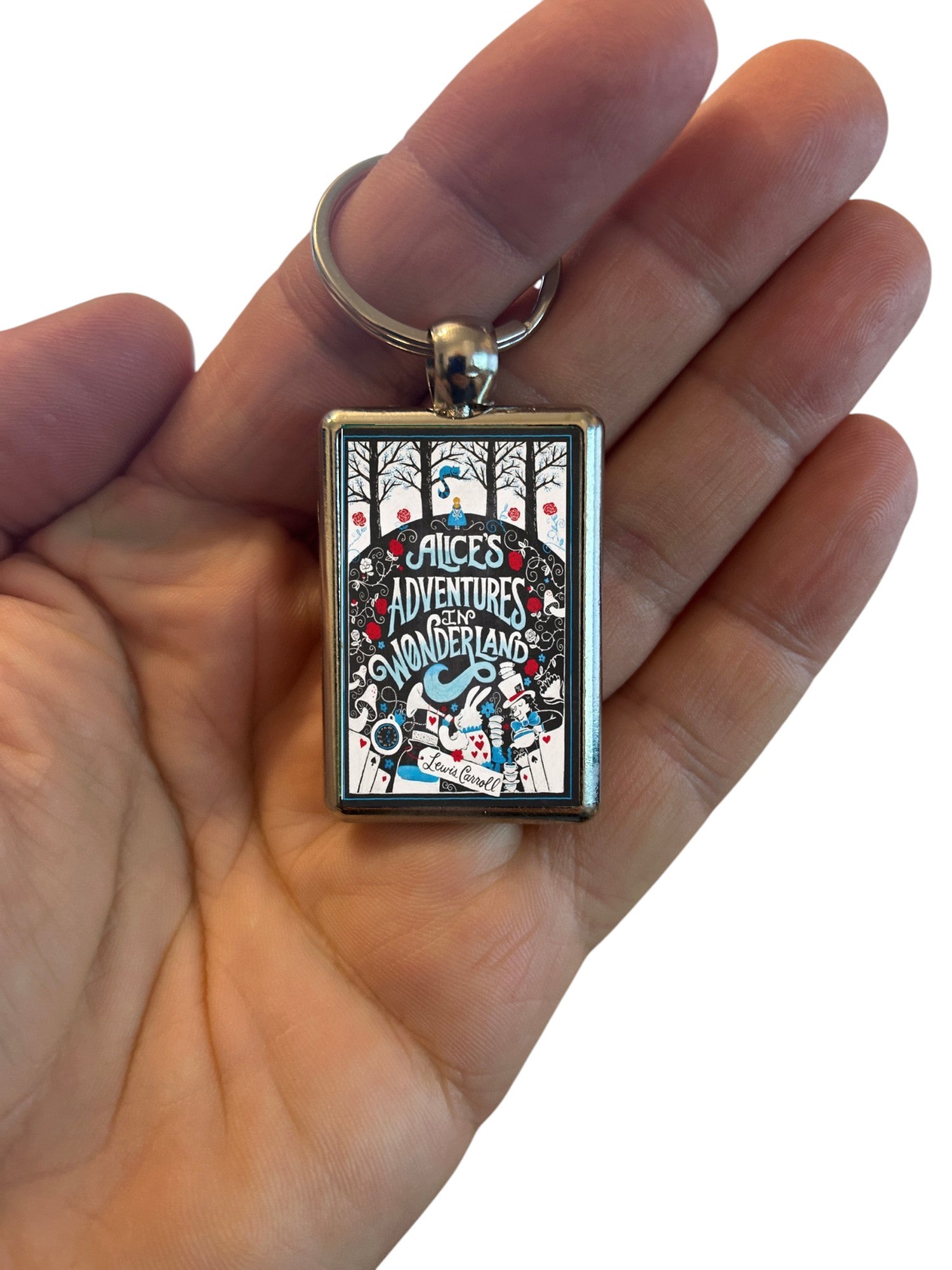 Carry a bit of wonderland with you wherever you go! This Alice in Wonderland book cover keyring is a must-have for any fan of the beloved story.