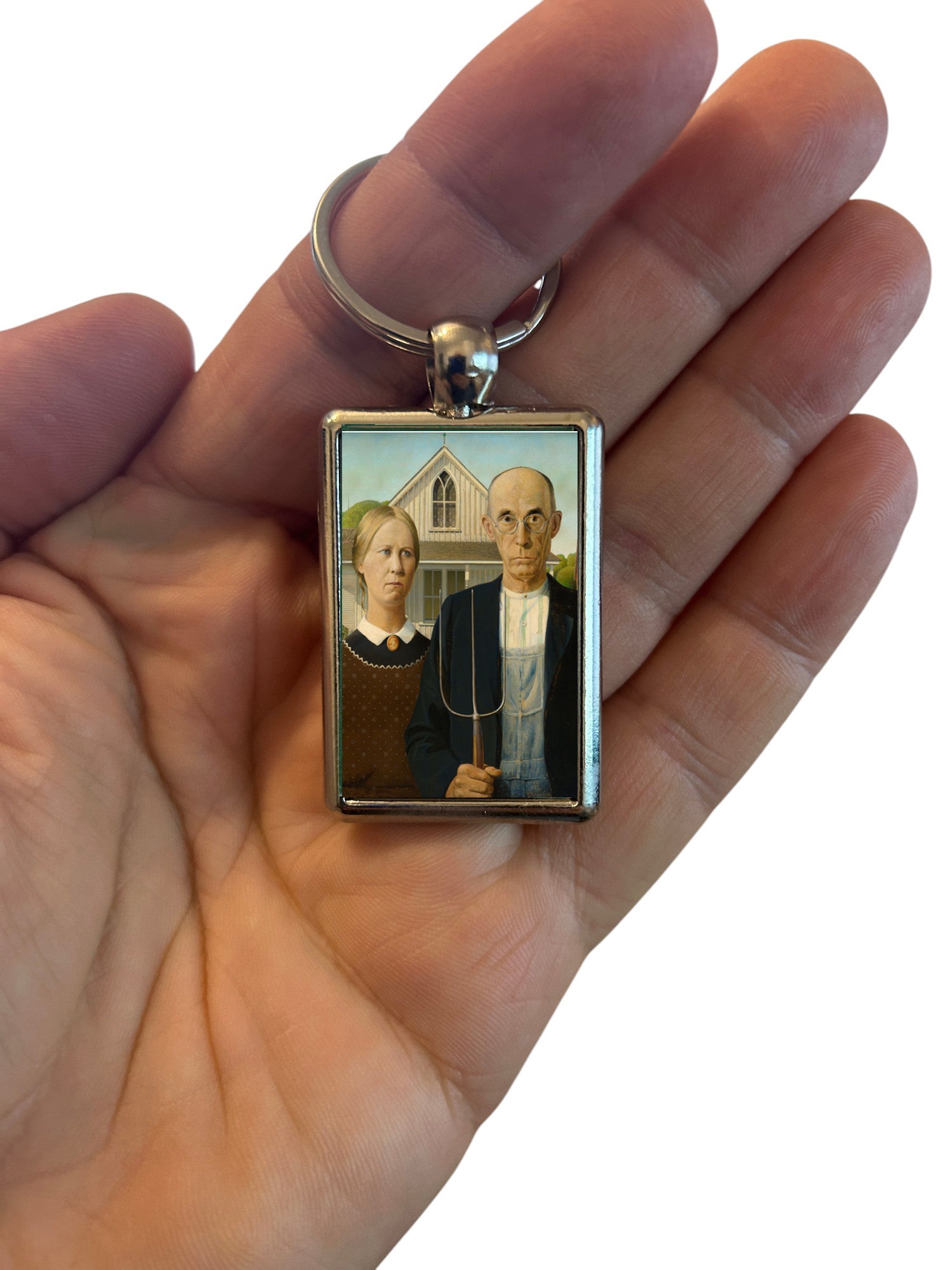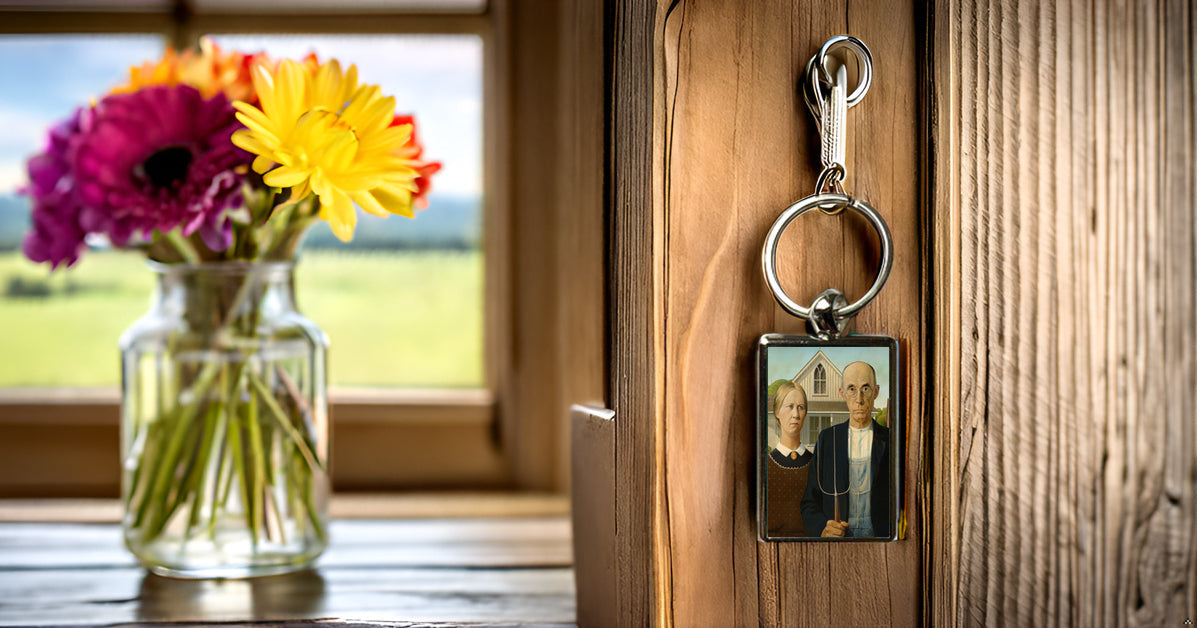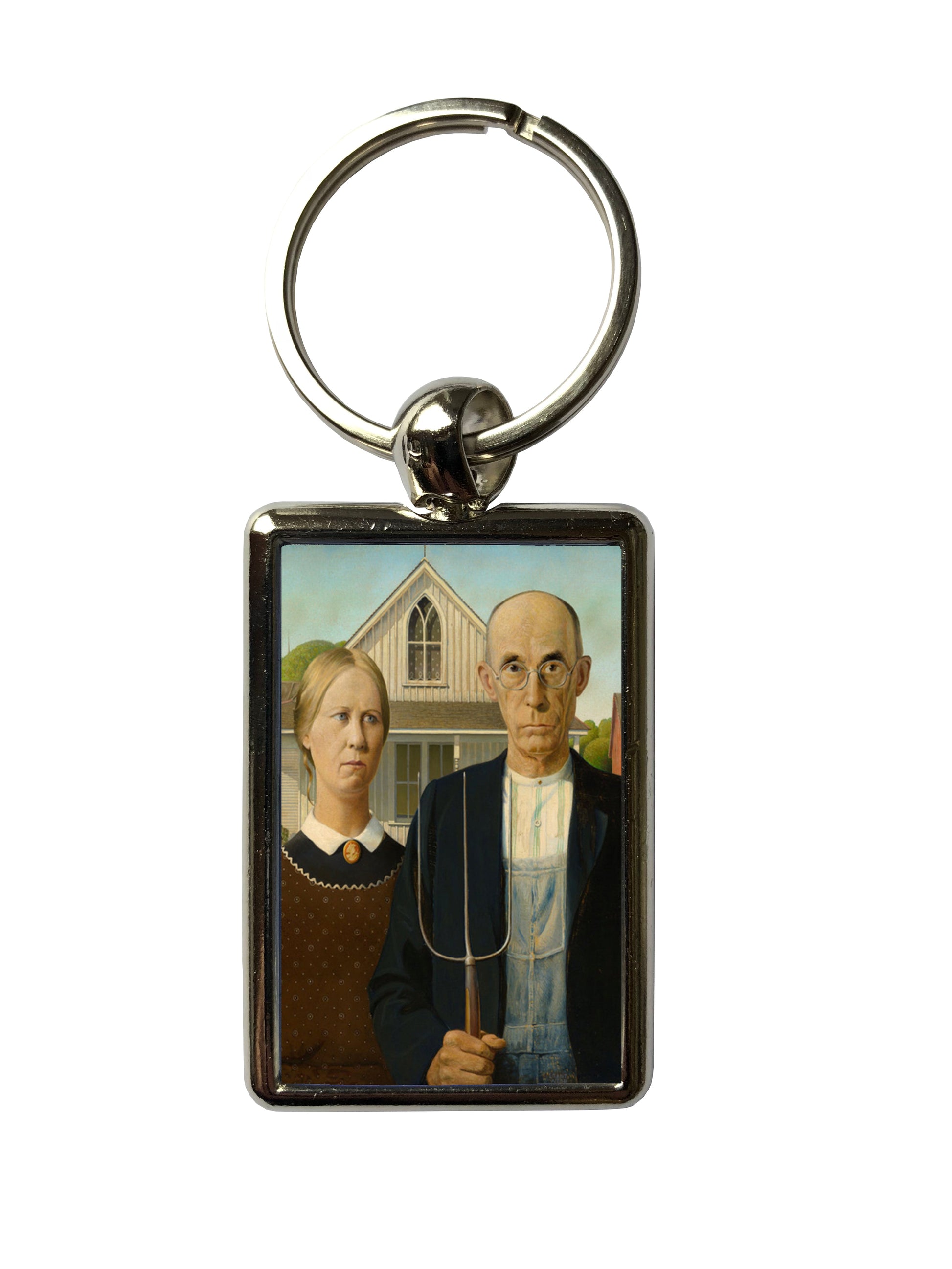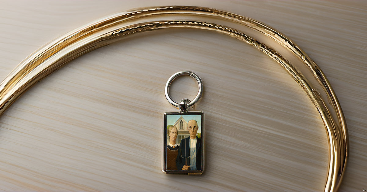 American Gothic Art Keyring – Grant Wood Classic Painting Metal Keychain