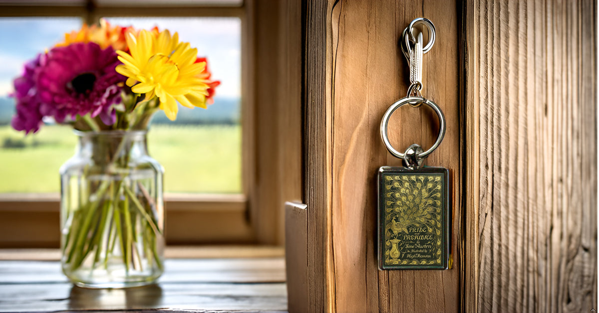 Carry the charm of one of literature’s most beloved novels with you wherever you go! This Jane Austen Pride and Prejudice Metal Keyring is the perfect accessory for book lovers and fans of timeless romance.