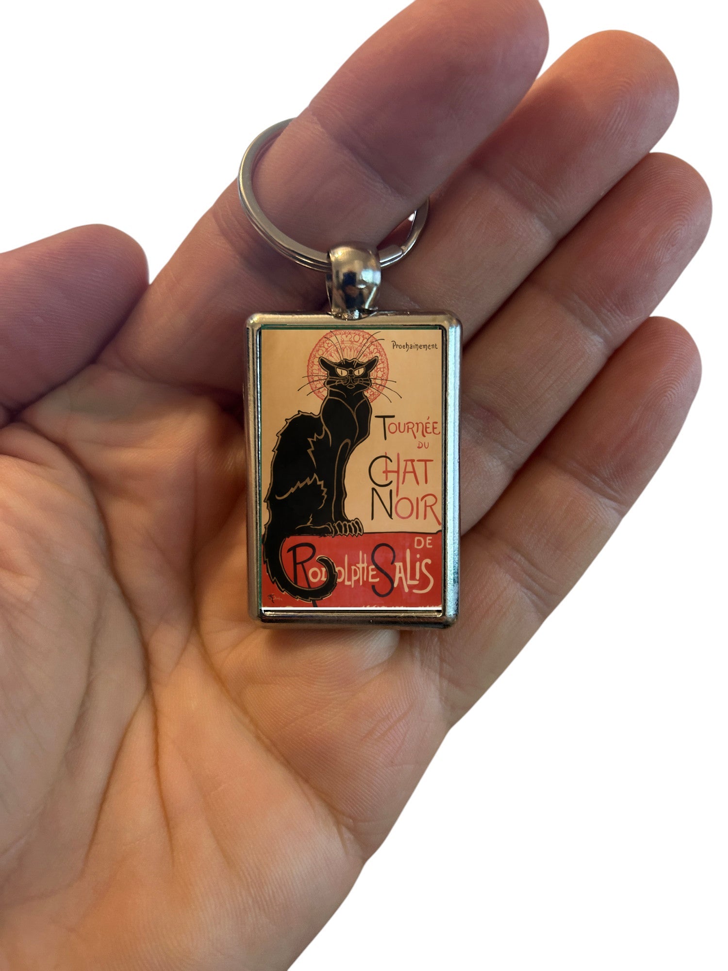 Le Chat Noir Keyring β Vintage French Art Metal Keychain