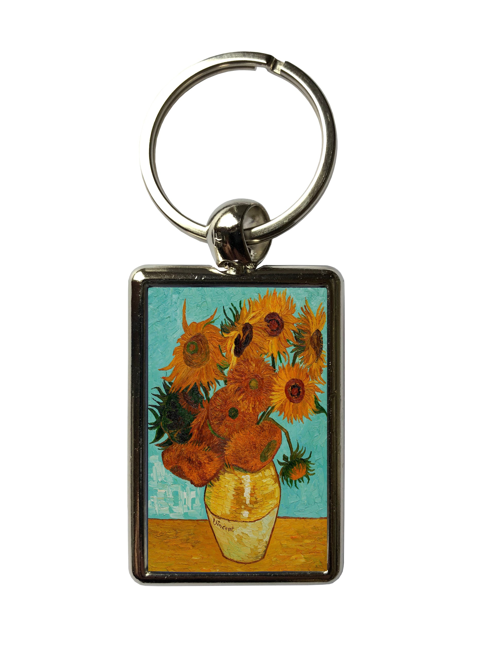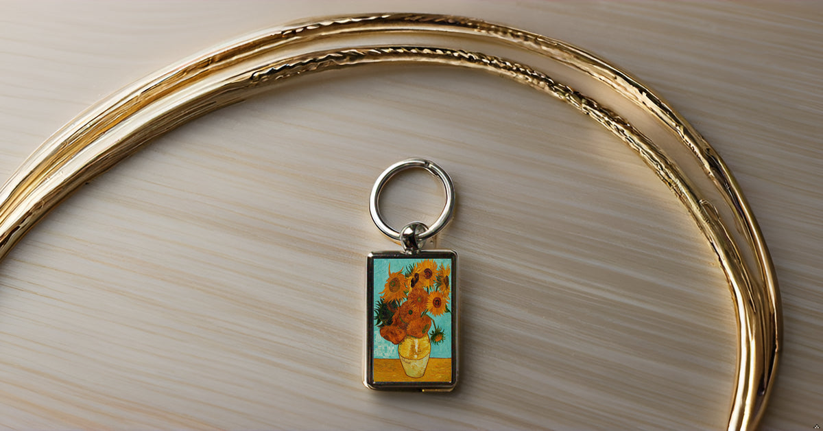 Van Gogh Sunflowers Keyring β Art Print Metal Keychain β Floral Art Gift for Her