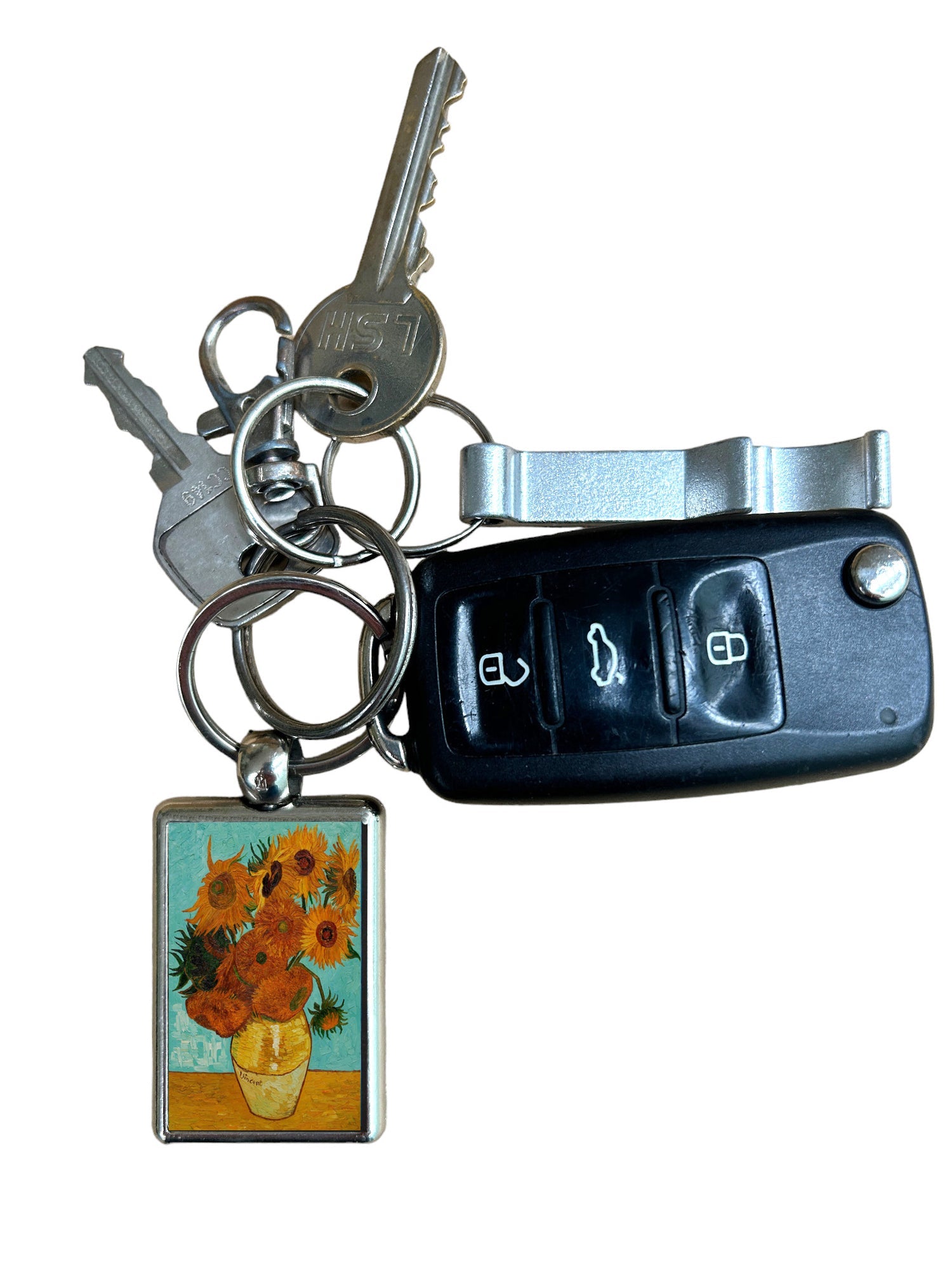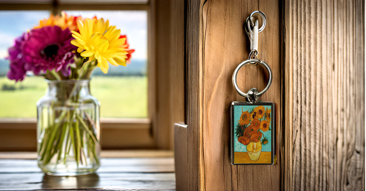 Celebrate one of the most iconic floral paintings with this Sunflowers by Vincent van Gogh metal keyring. A beautiful blend of classic art and everyday function, this compact keychain is perfect for art enthusiasts, students, and anyone who loves timeless design.